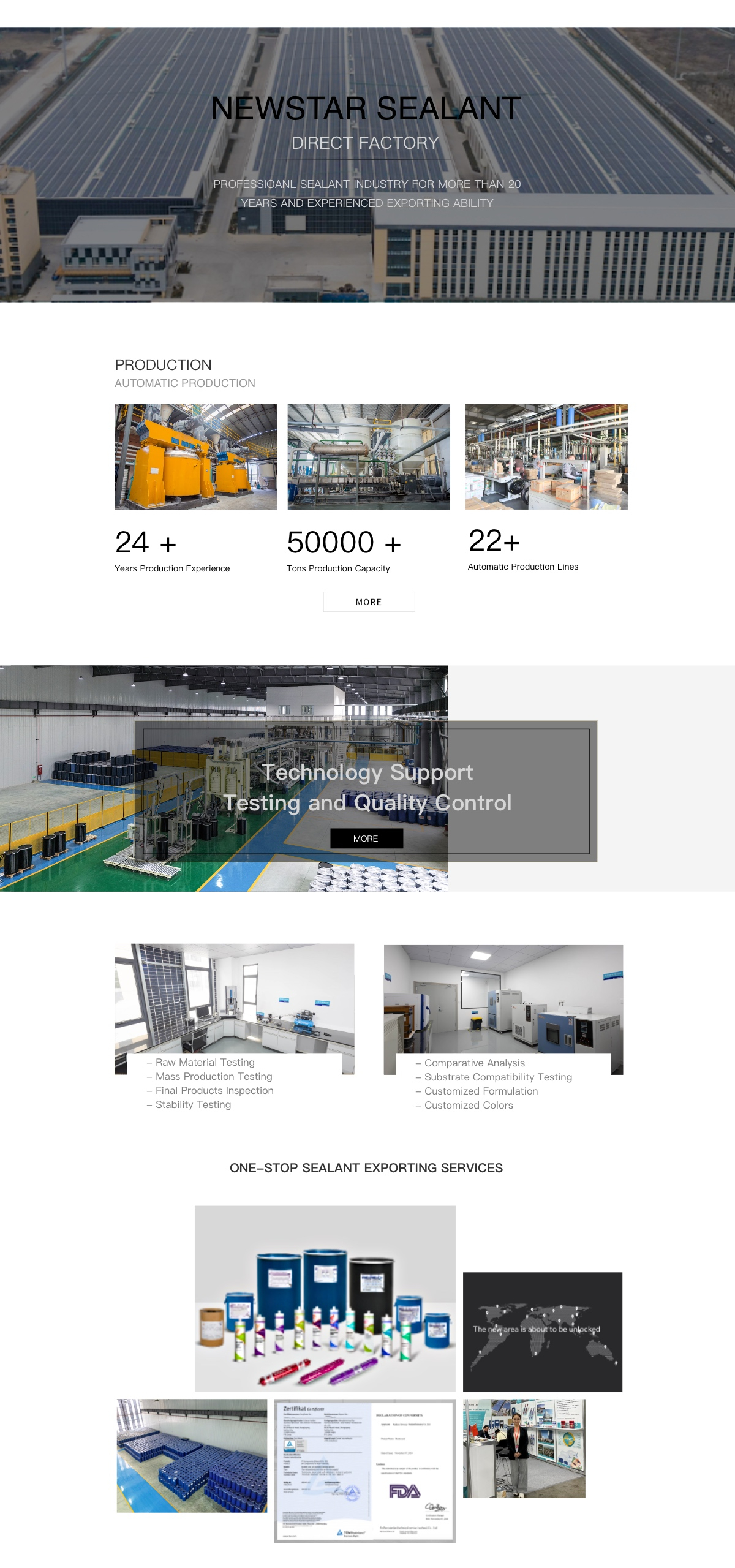 Productos principales:Sellador de silicona, Sellador de poliuretano, Sellador de butilo, Sellador acrílico, Adhesivo sellador